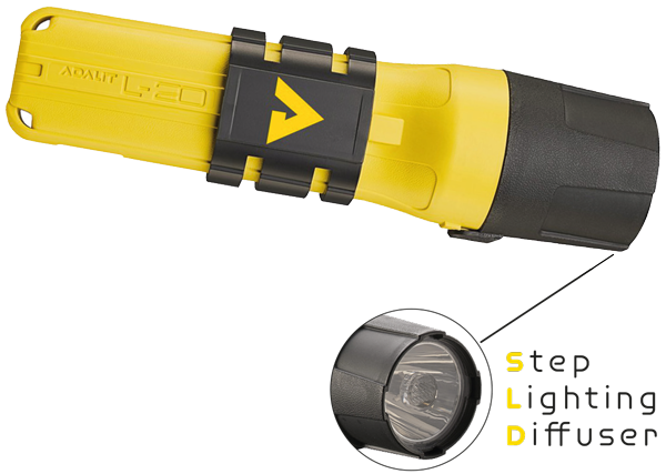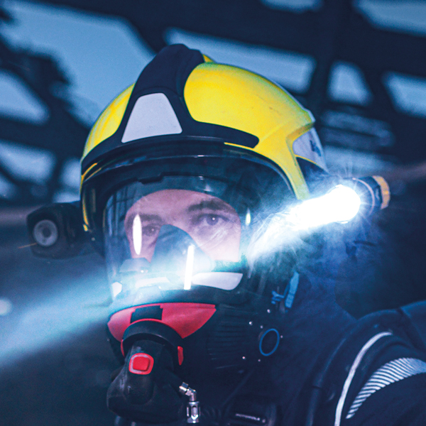 Die ADALIT L-20 ist leistungsstark, robust und sicher und kann von Hand oder am Helm des Feuerwehrmanns eingesetzt werden.